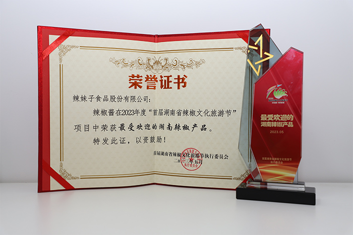 隨后會上頒布了首屆湖南辣椒旅游文化節(jié)評選榜單,辣妹子辣椒醬以其色澤紅潤、醬香濃郁、鮮辣細膩、上色均勻的獨特優(yōu)勢,在眾多展品中脫穎而出,同時受到多國駐華使節(jié)及行業(yè)專家們的贊譽和認可,在本次評選賽中斬獲“最受歡迎的湖南辣椒產(chǎn)品”殊榮。